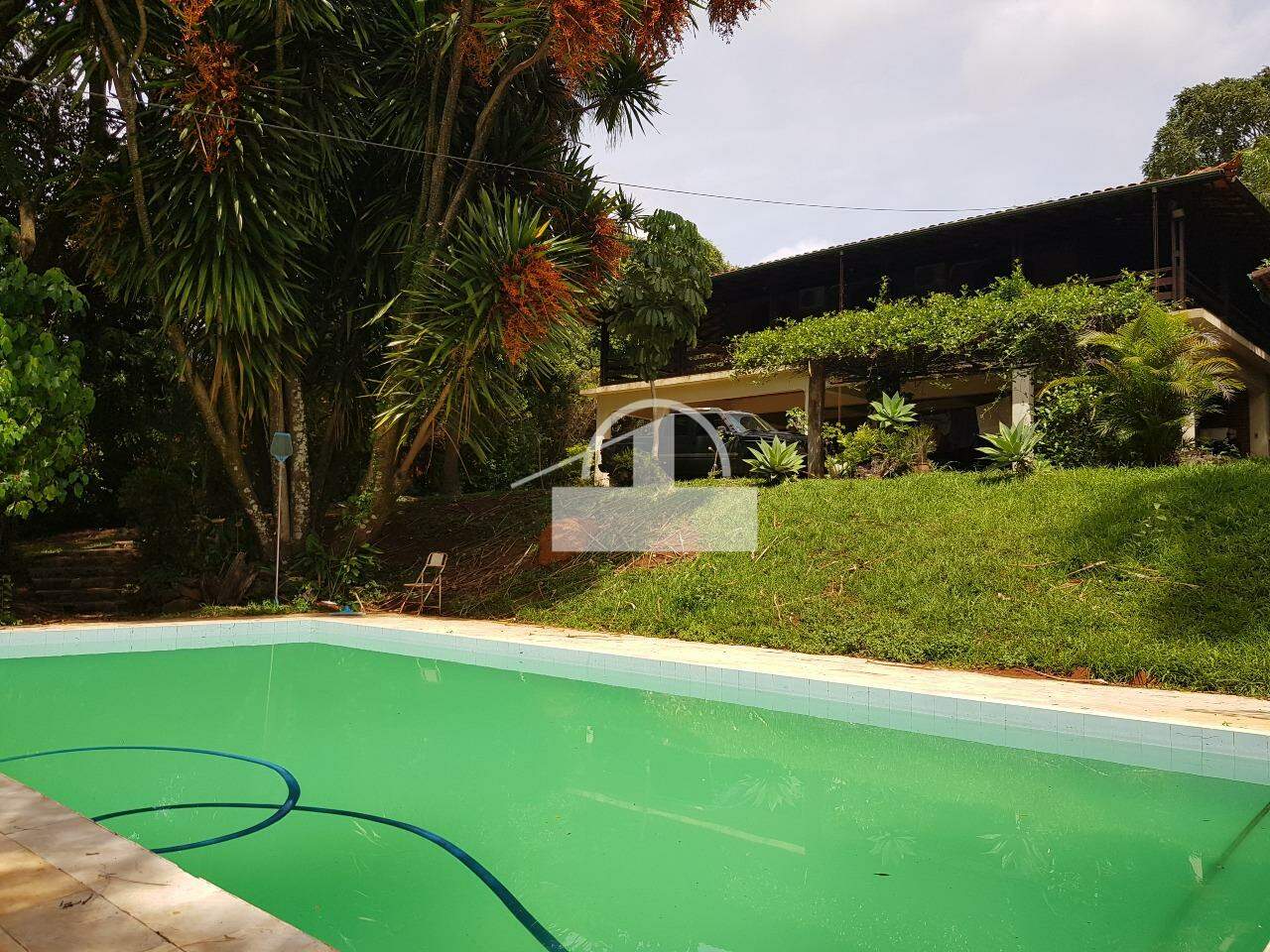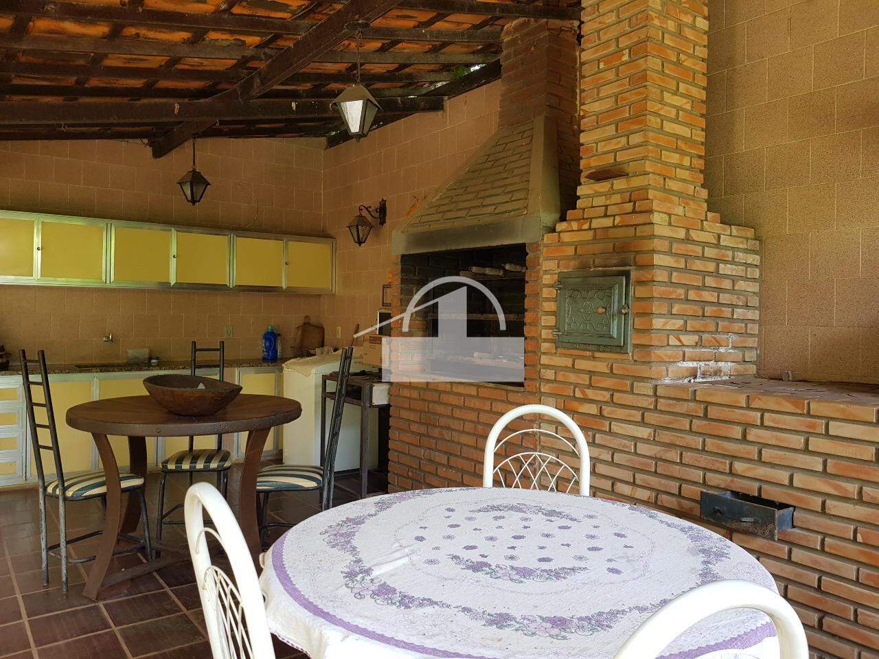 Casa com 03 Dormitórios, sala, cozinha, banheiro social, área de serviço, varanda, piscina, varanda com churrasqueira, campo de futebol, casa de caseiro, pomar, jardim, garagem e fundo para a lagoa.